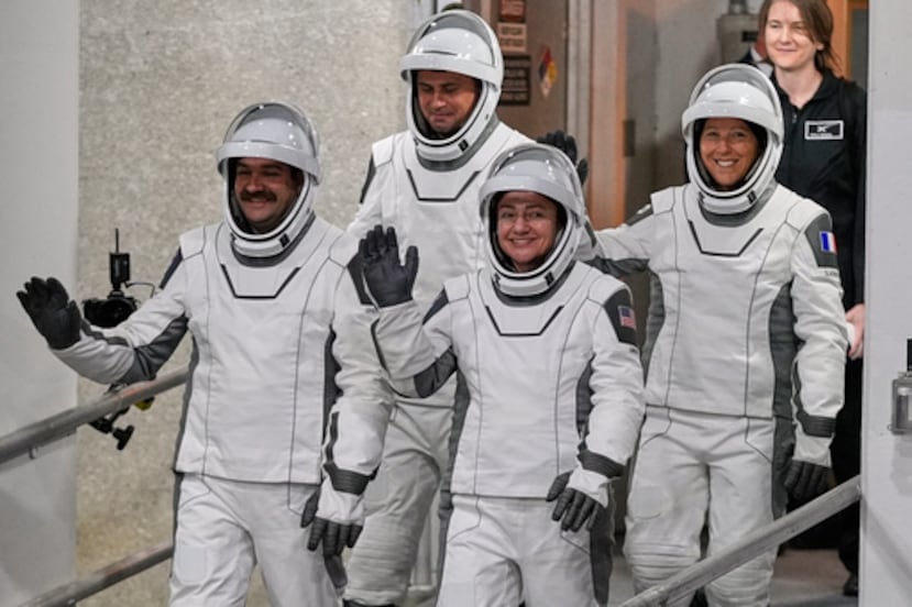 Jessica Meir y Jack Hathaway, de la NASA, Sophie Adenot, de Francia, y Andrei Fedyaev, de Rusia, se instalarán allí durante ocho o nueve meses. Meir, bióloga marina, y Fedyaev, antiguo piloto militar, ya han vivido allí antes. Durante su primera visita a la estación en 2019, Meir participó en la primera caminata espacial íntegramente femenina.