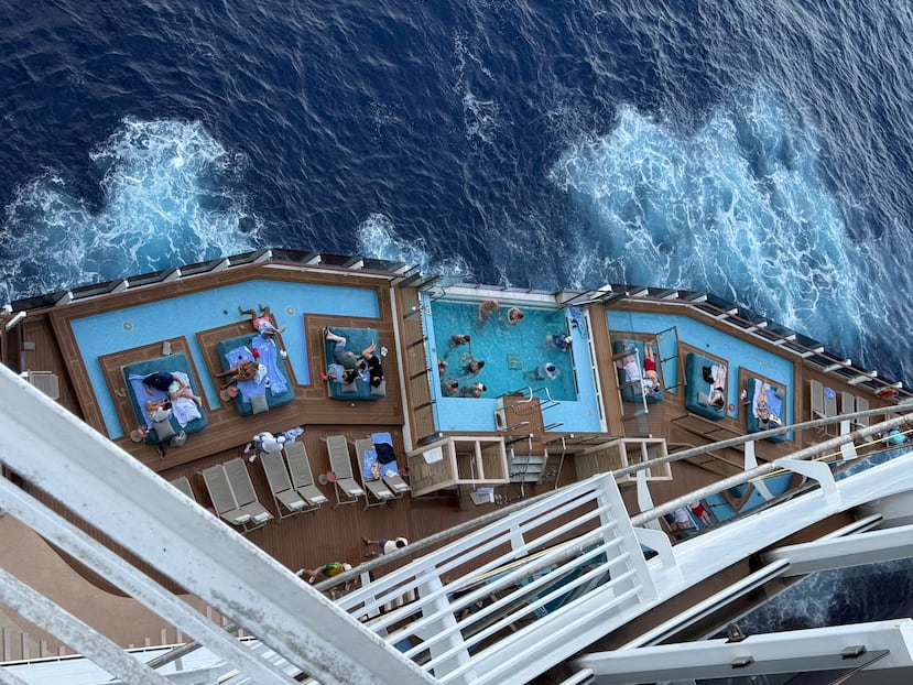 Entrando al barco, ya aparecían los signos indudables de que los viajeros venían de disfrutar de las atracciones temáticas de Orlando. Camisetas, juguetes y bolsas de compras de los parques de la ciudad nos recordaban que los itinerarios desde Puerto Cañaveral, tienen un encanto y valor añadido especial: pueden hacerse unas vacaciones dos por uno, en un mismo viaje, como los que está haciendo el Norwegian Prima, de Norwegian Cruise Line, saliendo desde este puerto, a menos de una hora de Orlando, hasta noviembre.