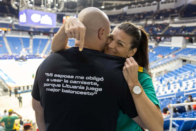 Abimael Rodríguez y Raúl Piza se robaron el ‘show’ en las gradas junto a sus cónyuges Laura Cekyte y Aurelija Juodkaite