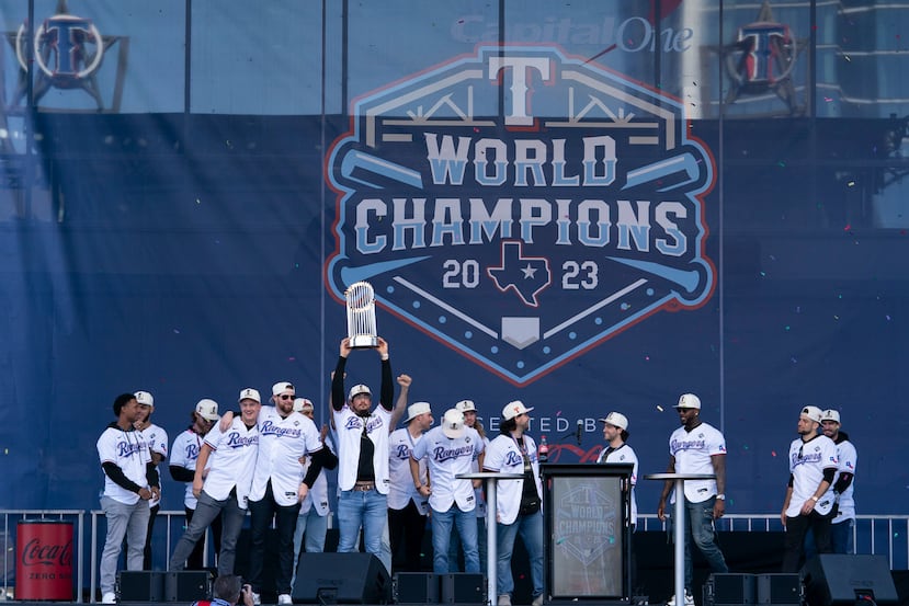 Se calcularon entre 400,000 y 700,000 los fanáticos que asistieron al desfile cerca del estadio en Arlington, donde los campeones de las Grandes Ligas fueron recibidos tras ganar el Clásico de Otoño el miércoles en Arizona