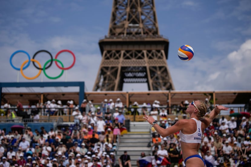 La icónica Torre Eiffel se roba las miradas de los jugadores de voleibol de playa y de fanáticos por igual
