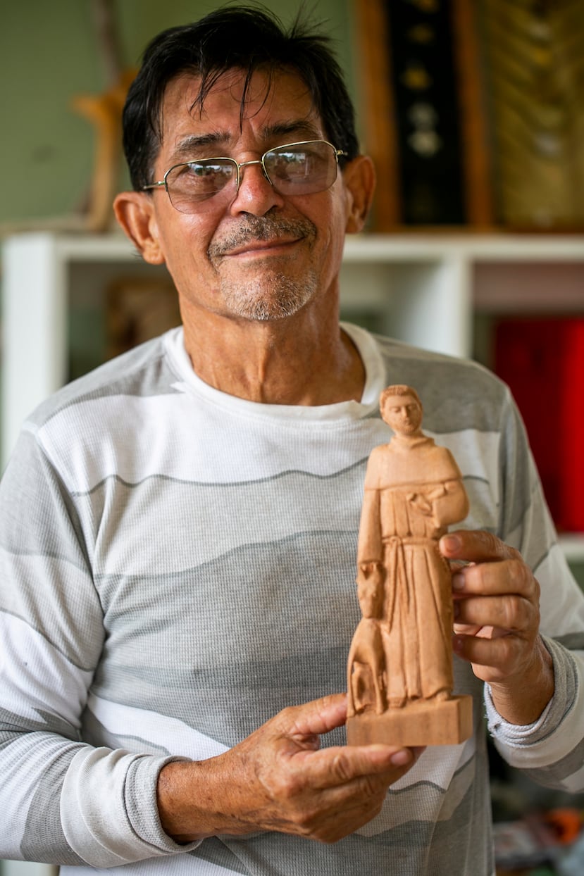 Aurelio Lorenzo Quiñones realiza piezas tradicionales en madera, pero también disfruta de practicar la agricultura y la escritura