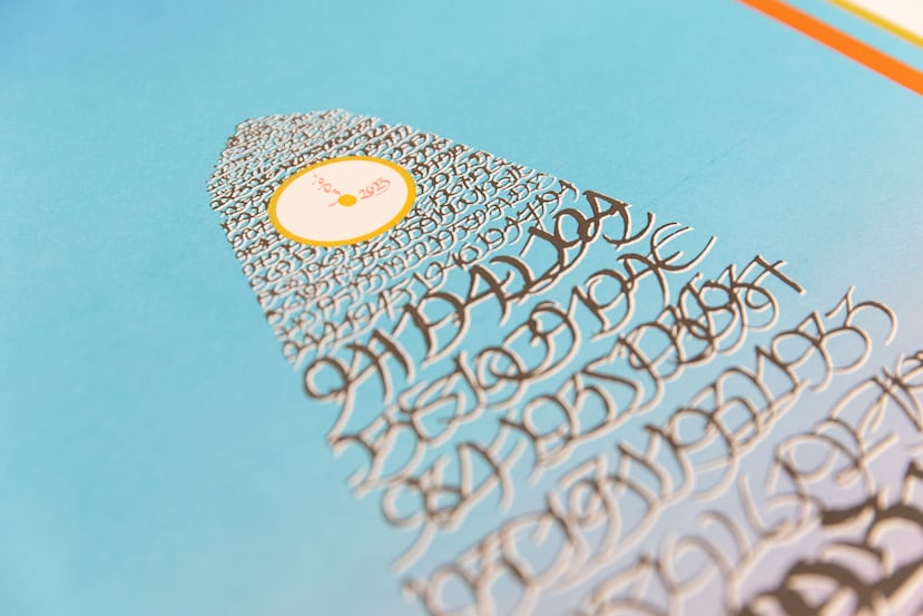 Para la creación del cartel conmemorativo, el distinguido pintor utilizó pocos colores y se centró en los números para relatar la historia