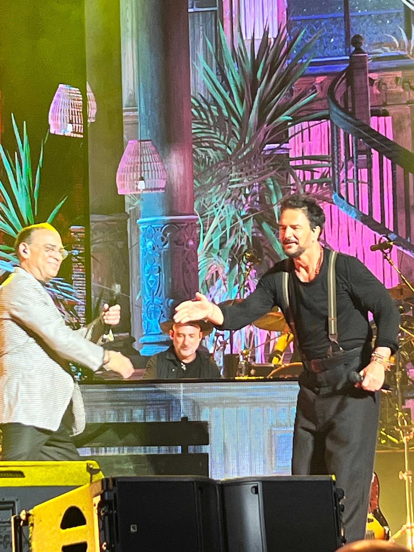 El “Caballero de la salsa”, Gilberto Santa Rosa sorprendió a los fanáticos del cantautor al aparecer sobre el escenario justo en en medio de la interpretación del éxito “Historia de un taxi”. El cantante llegó con su soneo a ponerla salsa a la tarima de Arjona que se llenó de nostalgia e historias con las letras de sus canciones.