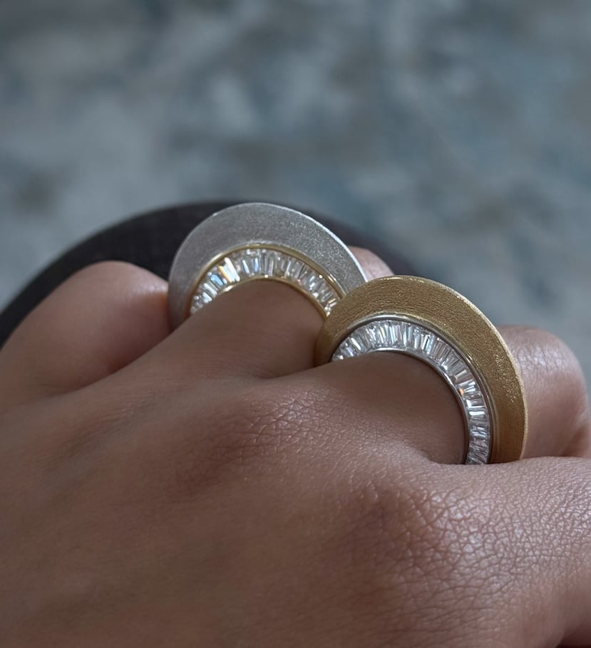 Esa artesanía impecable y atención al detalle también se manifiesta en la elección de materiales y en el cuidado con que cada superficie y piedra se integra al diseño de las joyas con pulso quirúrjico. “Trabajamos principalmente en oro de 18 quilates, tratado casi como un material vivo, moldeado en superficies que van desde acabados satinados suaves hasta expresiones texturizadas y orgánicas. Diamantes y piedras preciosas se seleccionan no solo por su calidad, sino por cómo interactúan con la forma, siempre en diálogo con el diseño”, abundó.