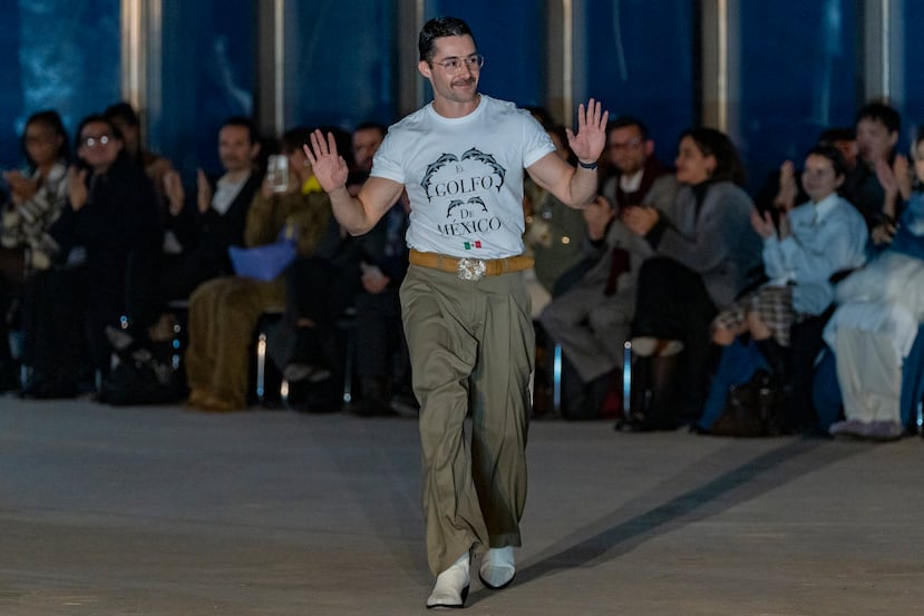 Diseñador mexicano desfila con camisa de protesta para defender el nombre del Golfo de México