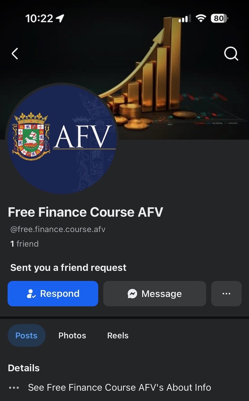 A través de este perfil falso que lleva como título “Free Finance Course AFV”, se utiliza de forma indebida y sin autorización el logo de AFV, informaron en comunicado de prensa.