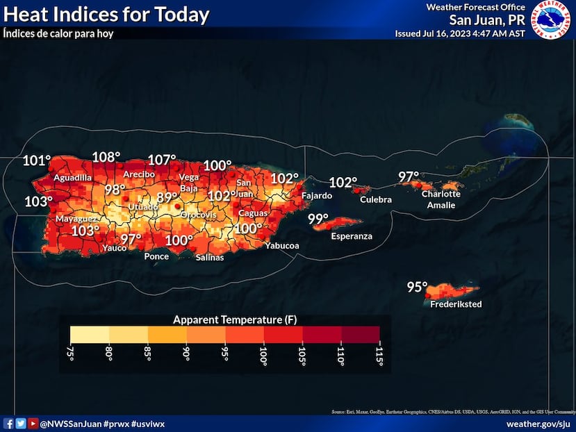 Se pronostican temperaturas de más de 102 grados Fahrenheit, mientras se esperan lluvias pasajeras para el este y oeste de la isla