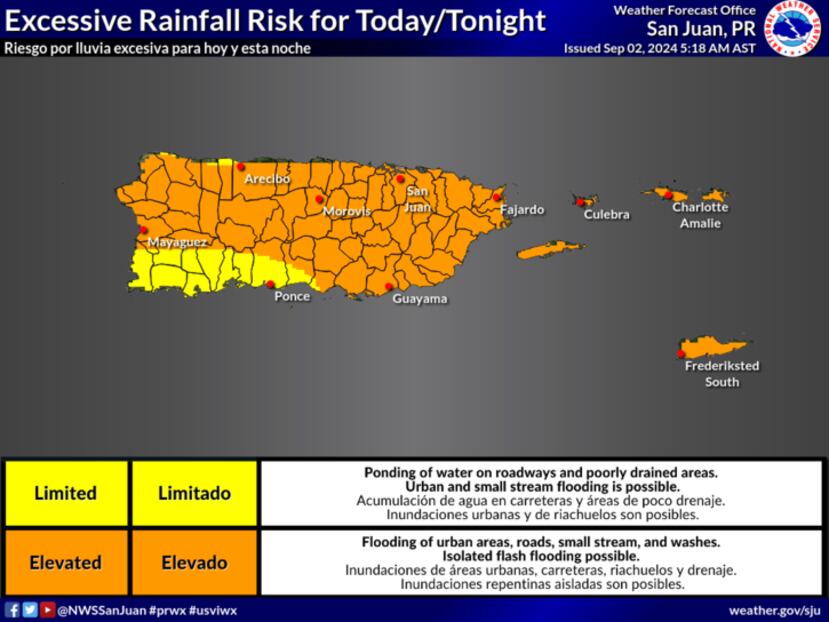 No obstante, la onda tropical estará pasando por el sur de Puerto Rico y dejará fuertes lluvias sobre la región este lunes feriado
