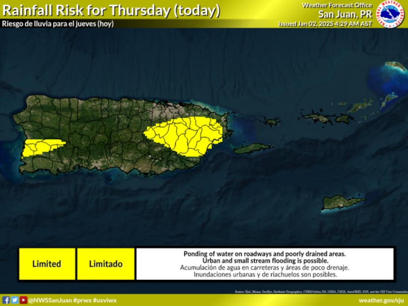 Se esperan aguaceros leves para el este de la isla durante la mañana de este jueves y alguna actividad en el interior durante la tarde, pero ninguna acumulación significativa
