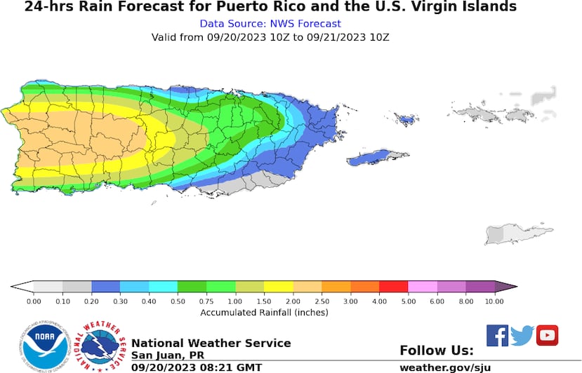 Pueblos desde el centro al oeste de Puerto Rico tendrán otra tarde tormentosa con fuertes aguaceros