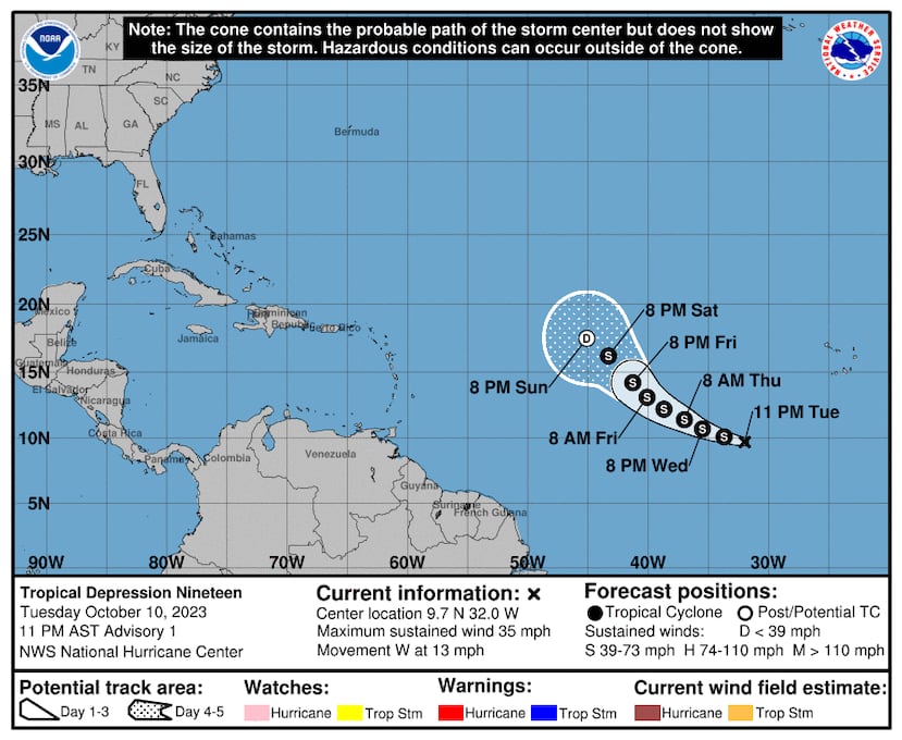 Se forma la depresión tropical 19 al suroeste de las islas de Cabo Verde