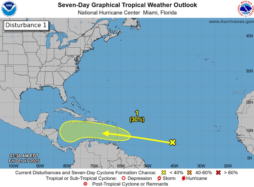 “Se espera que vaya aproximándose a la cuenca del Caribe, pero al momento es bajo (el porciento de desarrollo). Mientras se vaya moviendo, podría haber un aumento en los aguaceros y ráfagas de viento. Pero hay que contiunuar monitoreando las condiciones. Todavía la temporada de huracanes no ha acabado”, señaló.