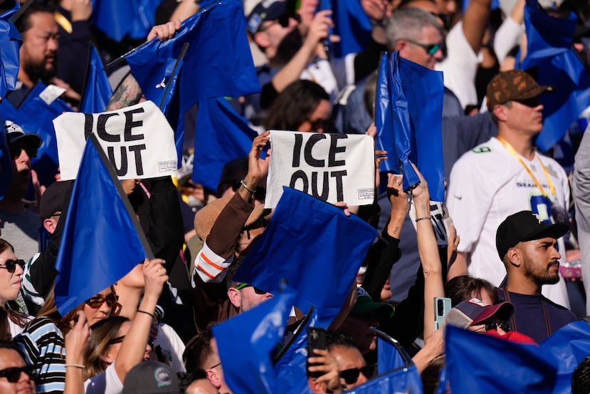 Imágenes difundidas por el medio ‘The Athletic’ muestran las toallas que el grupo ‘Contra-Ice’ repartió a los aficionados antes del inicio del encuentro, y donde además del lema contra el Servicio de Inmigración y Control de Aduanas (ICE), también se observa un conejo que patea un balón de fútbol americano situado dentro de un hielo (ice, en inglés).