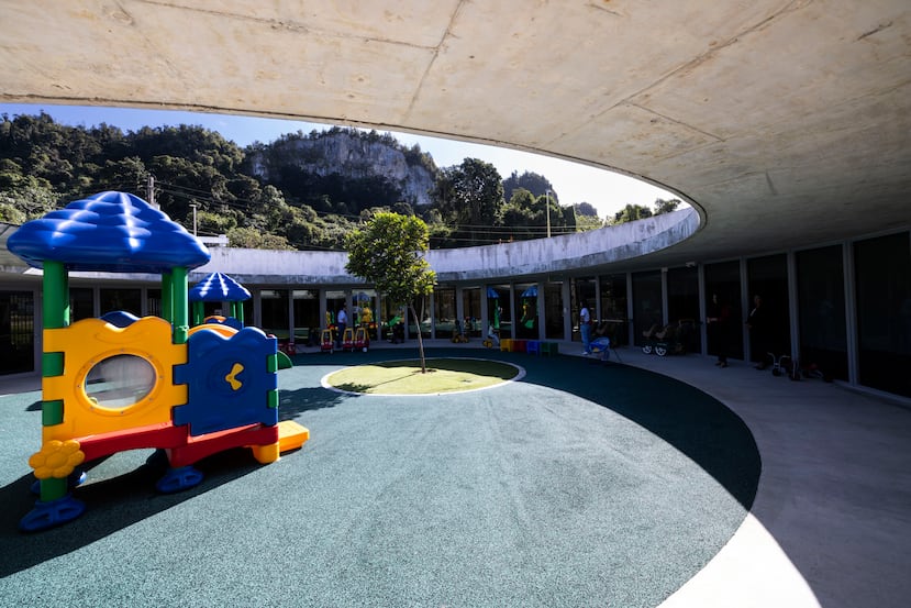 Ciales - Hay juguetes y chorreras, muebles pequeños y colchones para la siesta. El fregadero tiene una ventana al frente, a unos cuatro pies de distancia del suelo. Es la altura justa para que los niños observen hacia el patio interior de cada salón mientras se lavan las manos.