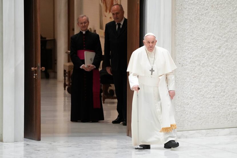 Ciudad del Vaticano - El papa Francisco entró este miércoles caminando ayudado con un bastón en el aula Pablo VI donde se celebró la tradicional audiencia general y leyó sin problemas la catequesis que había preparado.