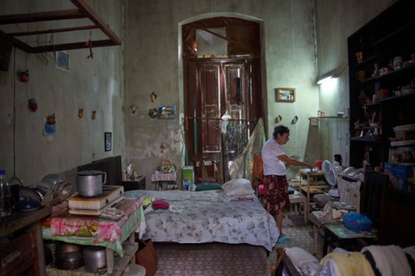 Después de comer, Casado recorrió a pie las cuatro manzanas que la separan de su casa para ocuparse de las tareas domésticas que aún realiza sin ayuda. Su casa está en el segundo y último piso de un edificio del siglo XIX que, como muchos de la capital, se está cayendo a pedazos.