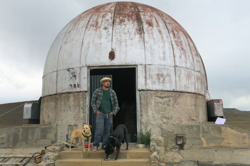 “He decidido aislarme del mundo”, confiesa Javier Soto, un joven ermitaño de 35 años que vive en las instalaciones de un viejo observatorio abandonado en la solitaria estepa santacruceña, a un costado de la mítica ruta 40, a 500 metros del río La Leona, a cien de El Calafate y lejos de todos. La extravagante cúpula metálica brilla como un objeto espacial, algo oxidado y sometido a las tormentas del olvido. “La gente para y quiere conocer la historia”, afirma Soto.
