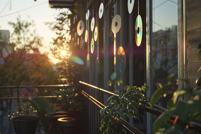 En muchas ciudades es cada vez más común ver balcones adornados con discos compactos (CD) que cuelgan y giran con el vaivén del viento.
