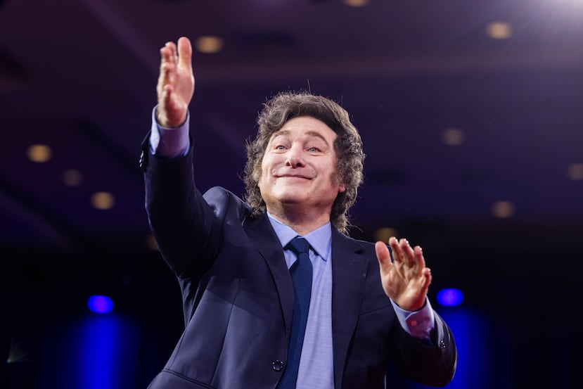 A las 10:27 p.m. de octubre pasado, Javier Milei subió al escenario. Saco y corbata, contento y con una euforia medida: la sala estaba colmada de seguidores y, obviamente, fue recibido con vivas desde todos los sectores. Se hizo silencio y cantó una estrofa de una canción partidaria a capela. Hubo una arenga y empezó su discurso.
