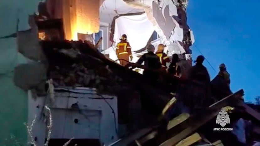 En Syzran, ciudad de la región rusa de Samara situada a unos 800 kilómetros al este de la frontera con Ucrania, el ataque de un dron provocó el derrumbe de una parte de un edificio de viviendas, según informaron las autoridades locales.