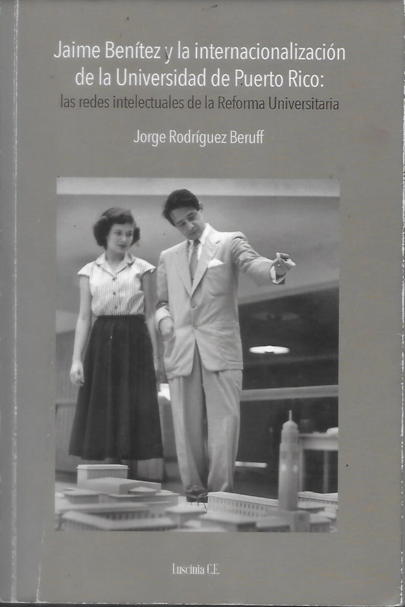 El libro de Jorge Rodríguez Beruff, titulado Jaime Benítez y la internacionalización de la Universidad de Puerto Rico, publicado por la Editorial Luscinia, es una obra fundamental para entender la ideología educativa que cimentó el desarrollo de nuestra Universidad bajo la dirección de su rector histórico, Don Jaime Benítez, ello a partir de la reforma universitaria de 1942. La foto seleccionada para la portada es un emblema del “benitismo”. Nos retrata a un joven rector mostrándole a una intimidada y tímida reina de belleza universitaria las maquetas del futuro Recinto de Río Piedras.