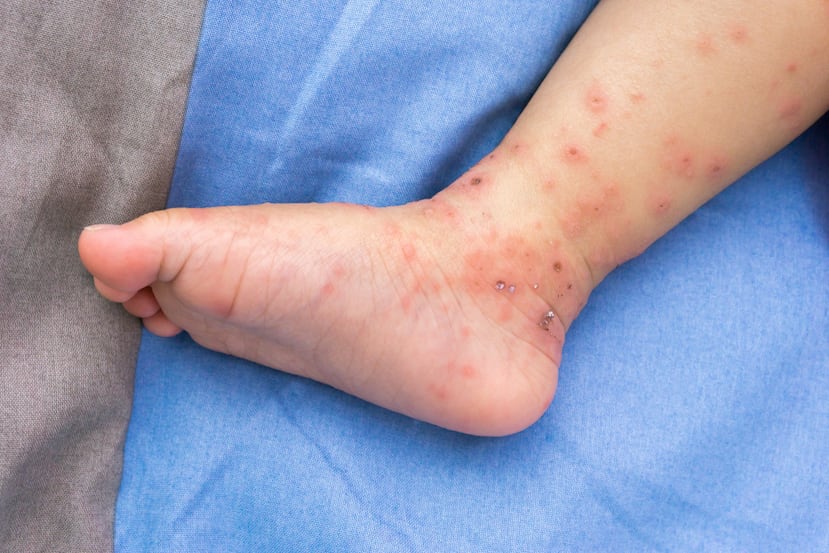 Se transmite fácilmente a través de la saliva, las secreciones nasales, el líquido de las ampollas de la piel y las heces; por eso es común en guarderías y escuelas.